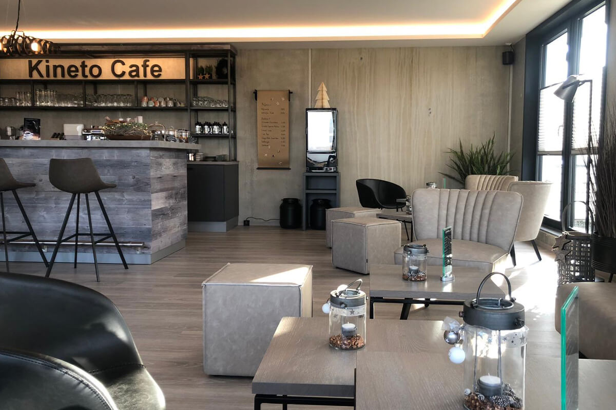 Bei uns im Kineto musst Du nach Deinem Training und Saunagang nicht direkt wieder den Nachhauseweg antreten. Unsere stylishe und großzügige Lounge mit Außenterrasse im 2. OG lädt zum Verweilen und Zusammenkommen ein. Genieße bei netten Gesprächen die tolle Aussicht bei einem Proteinshake, einem Cappuccino oder Softdrink.